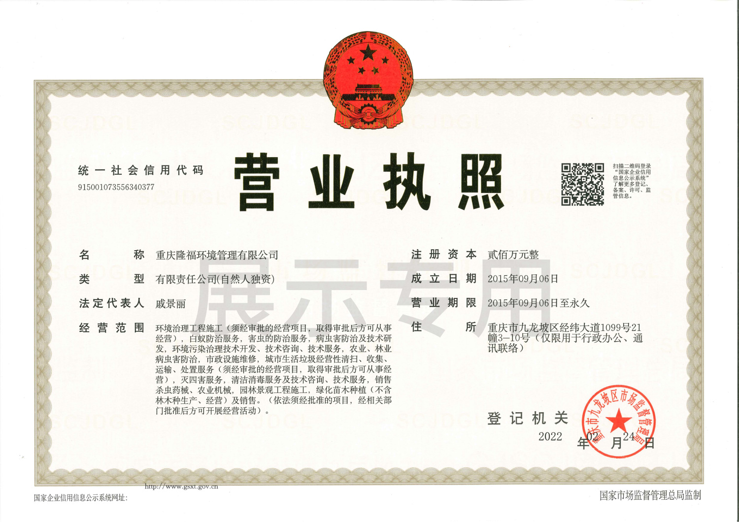 重慶隆福環(huán)境管理有限公司(以下簡稱“我司”)成立于2015年,另于2022年成立海南分公司。是一家從事專業(yè)白蟻防治、害蟲消殺、消毒防疫、園林景觀施工、滅蟲藥械銷售為一體的綜合性服務(wù)公司。